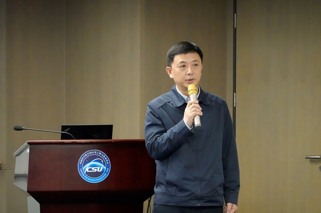图:中心党委副书记王志伟致辞 协会负责人汇报了协会一年来的工作情况,展示了协会会员以及志愿者团队在过去的一年服务中心科普工作中的良好风貌。中心党委副书记王志伟到场致辞。他高度评价协会及志愿者团队在支持中心科普工作开展方面做出的重要贡献,希望协会的同志们团结协作,创新科普工作形式及展厅讲解教育形式,让志愿者团队走出去,把空间站科普带到更多边远地区,助力青少年成长与人才培养。 2021年是中心科普工作蓬勃开展的一年,筑梦星空展厅全年开放近200场次,接待观众2400余人次,其中青少年1300多人,参观群体覆盖幼儿园、小学、中学、大学、社会团体、专家、院士等。协会志愿者完成全年150多次讲解及航天日、公众科学日等重大科普活动服务保障。精心策划组织的“我们的空间站来了”公众科学日活动被北京市科普志愿服务总队评为2021年优秀科技科普志愿服务。
