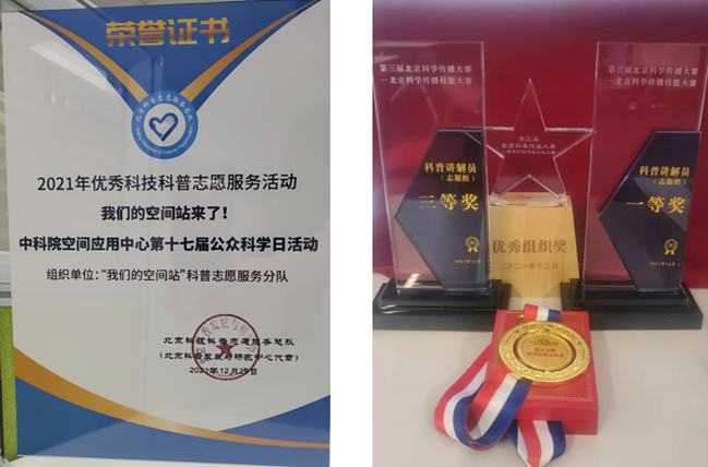 图:科普协会活动及成员获得的奖励