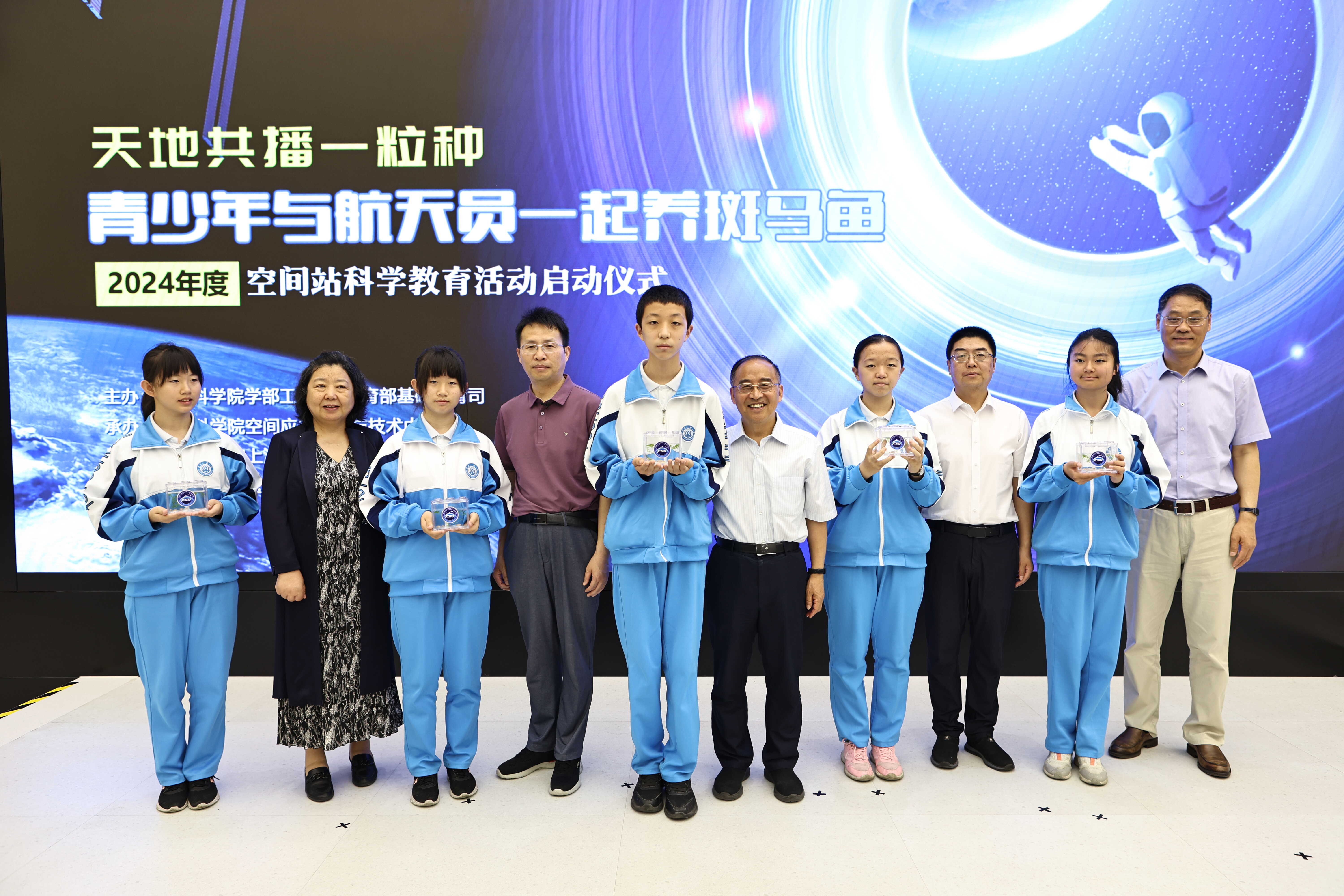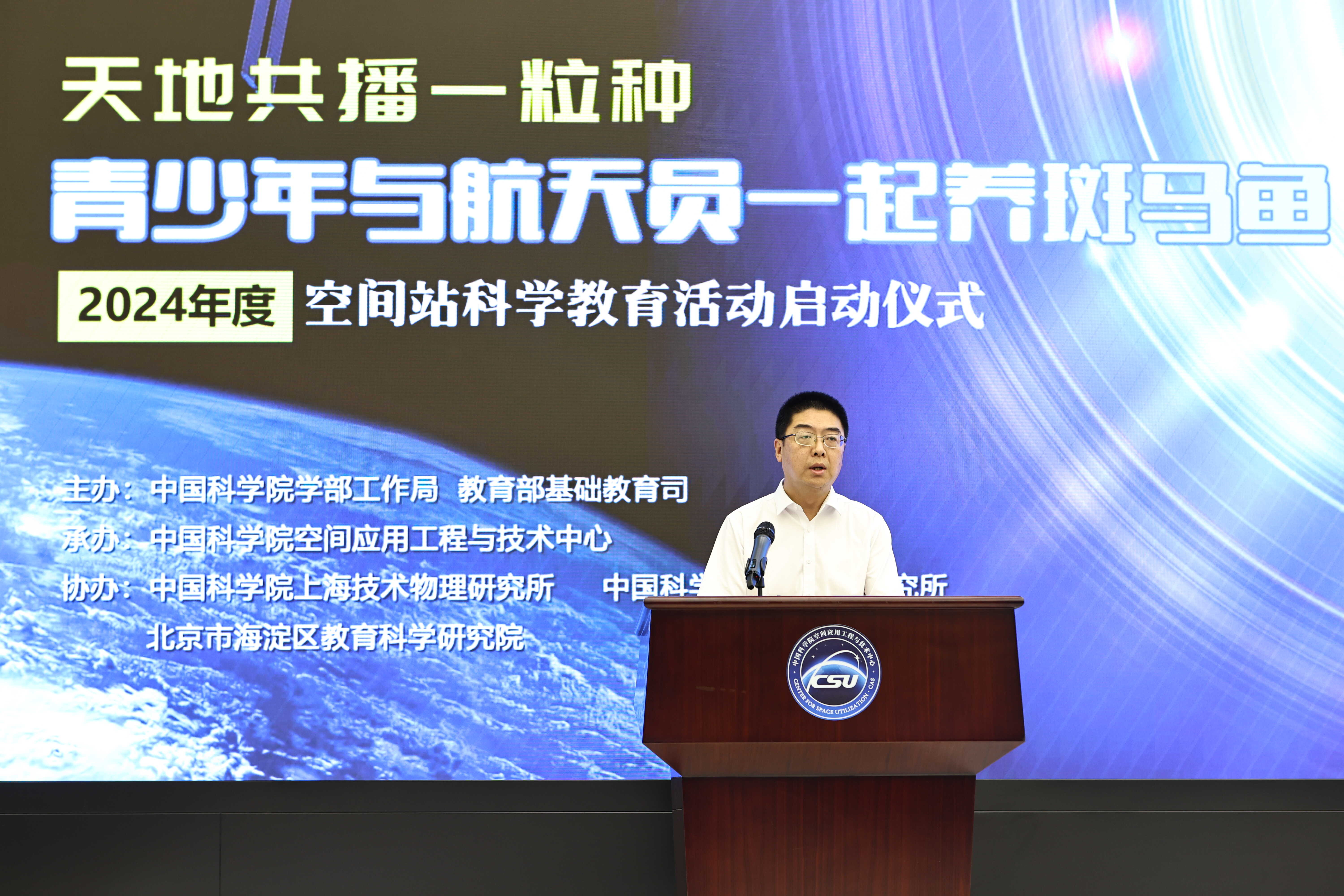 5月19日,2024年度“天地共播一粒种——青少年与航天员一起养斑马鱼”科学教育活动在中国科学院空间应用工程与技术中心启动。该活动由中国科学院学部工作局、教育部基础教育司主办,中国科学院空间应用工程与技术中心承办,教育部基础教育司副司长李海胜、中国科学院学部工作局三级职员周德进出席启动仪式并致辞。活动面向全国青少年开展,北京中关村中学、北京一零一中学双榆树校区的40名学生代表现场与科学家和科学教育专家进行了互动交流。